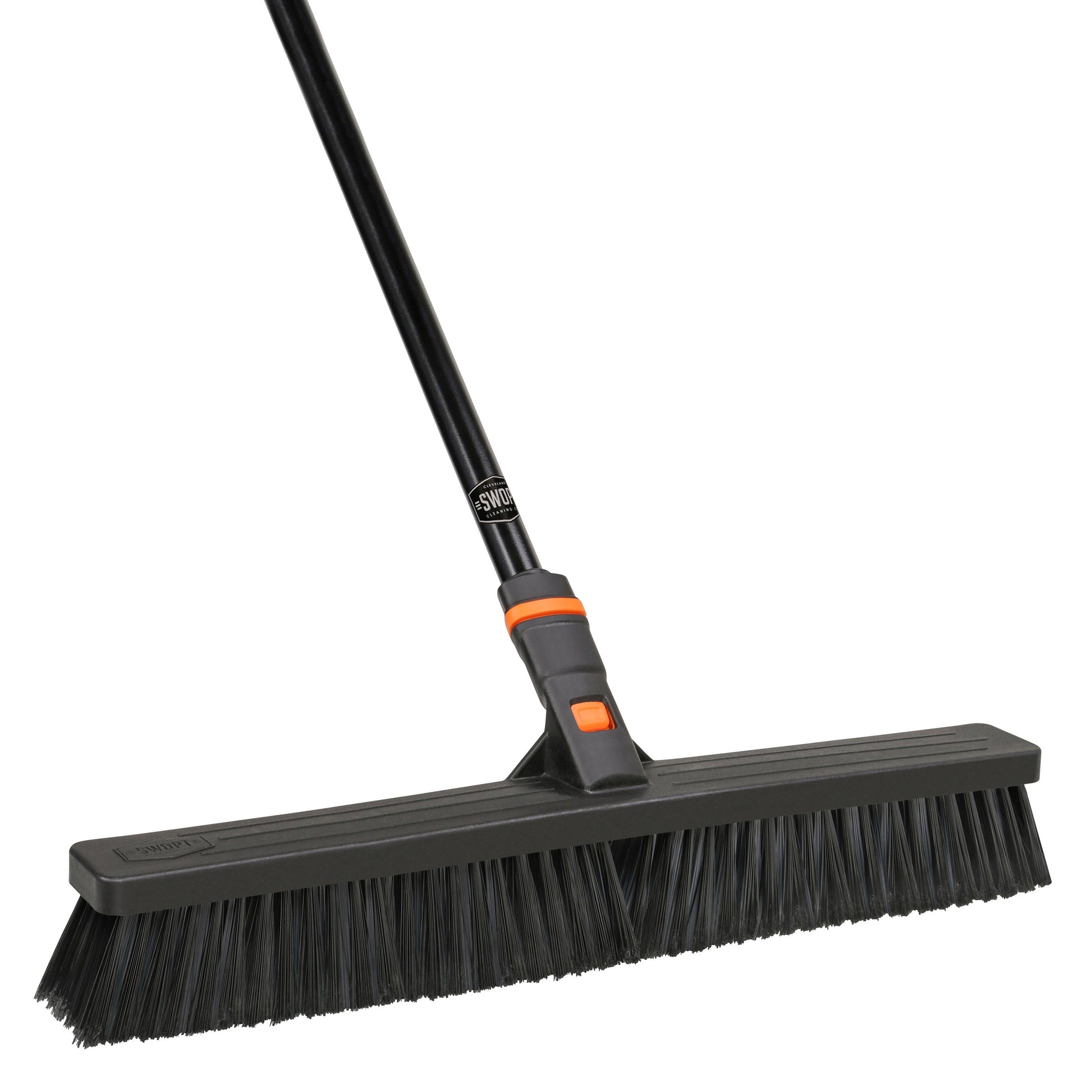 Combo includes 2 items. 24 in. Multi-Surface Push Broom Head - Multi-surface bristles feature a stiff inner core for moving large debris and a soft border for picking up finer particles.