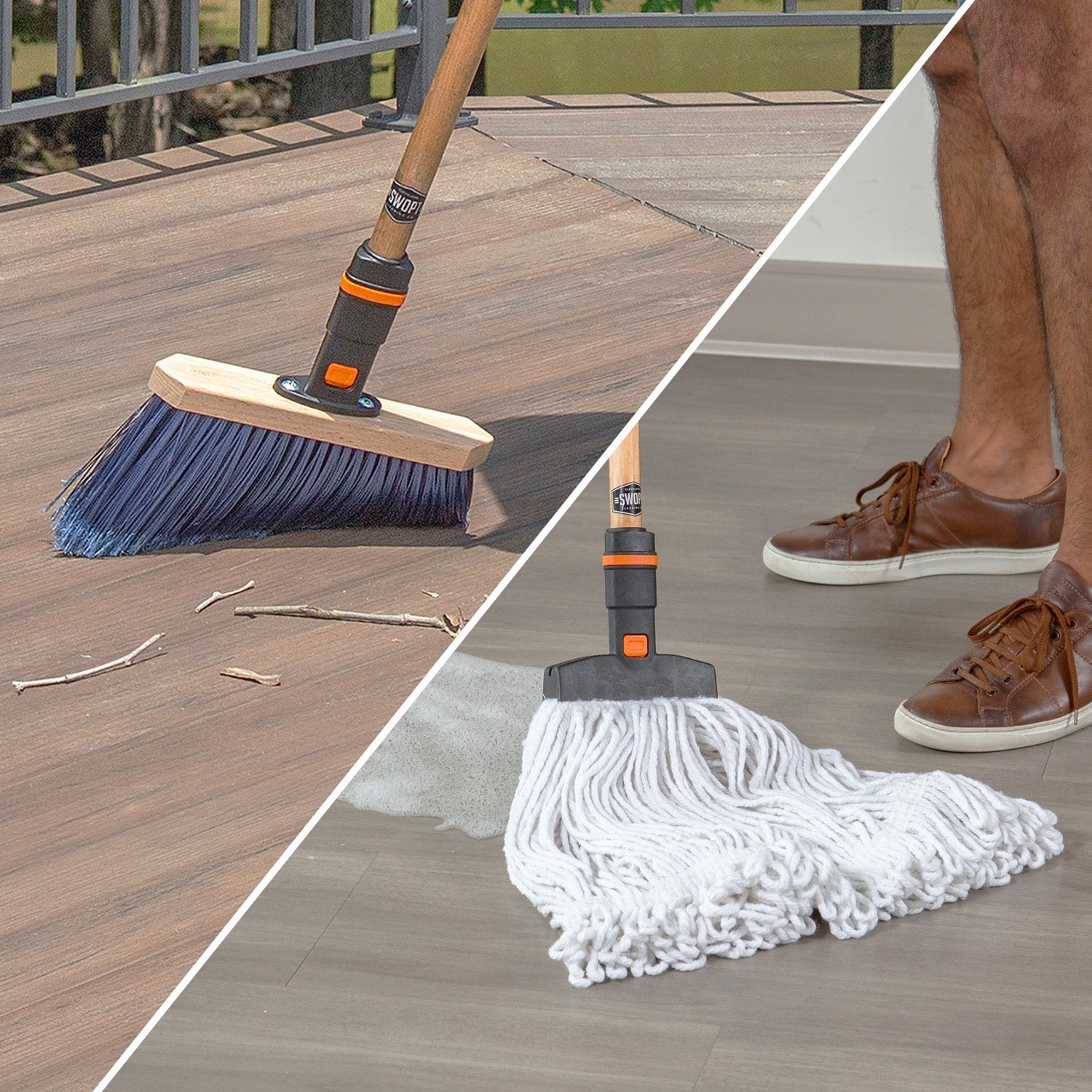 SWOPT cleaning kits are your ultimate solution for a sparkling clean home, garage, or outdoor space. Experience the future of cleaning with our patented Snaplock Technology that makes it super simple to "swopt" a head or handle with a push of a button. Our kits offer an array of cleaning handles, tools and attachments that are designed to make your cleaning routine more efficient and cost-effective - whether you're sweeping, mopping, or dusting. With a SWOPT kit, you get to enjoy a cleaning system that is functional, versatile, space-saving, and aesthetic for all your cleaning needs from floor to ceiling.