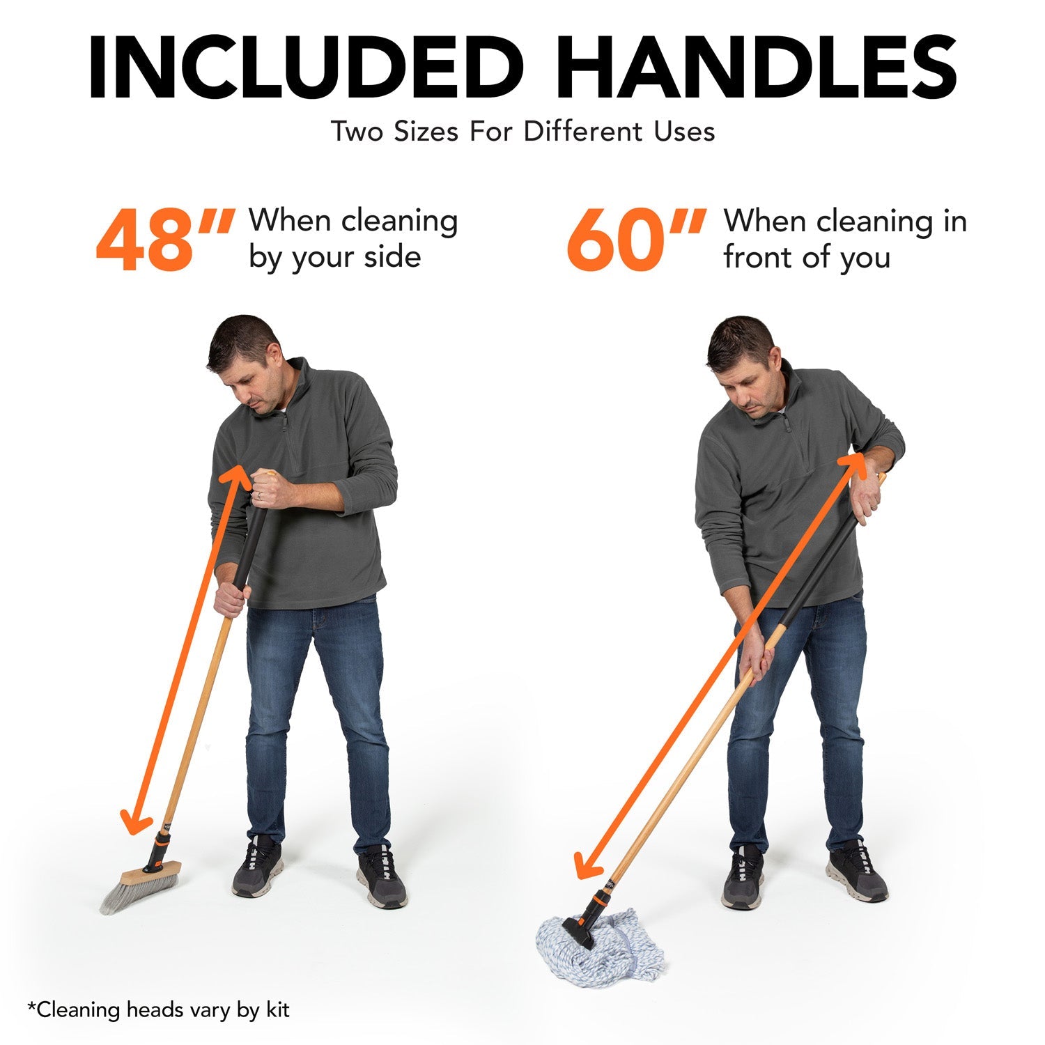 Premium Angle Broom Head and Cotton Mop Head Bundle with 2 Handles